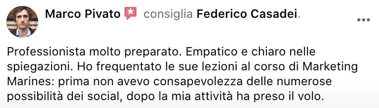 Sono co-autore del libro “Imprenditore Marine” e Co-Founder e Docente di Marketing Marines, il primo campo di addestramento per imprenditori in Italia.